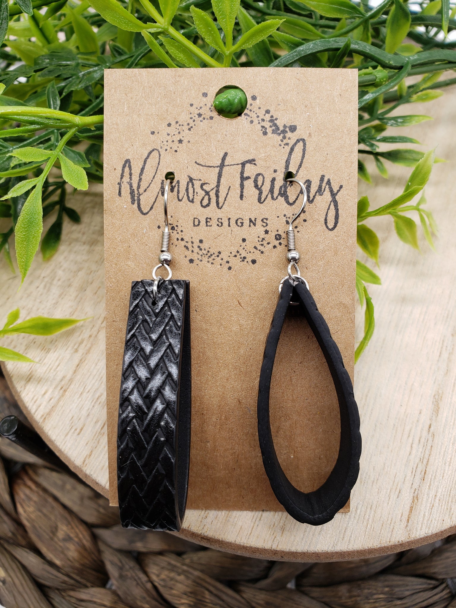 **Our earrings are typically cut from a large piece of leather. Each pair of earrings varies and may not be exactly as pictured.